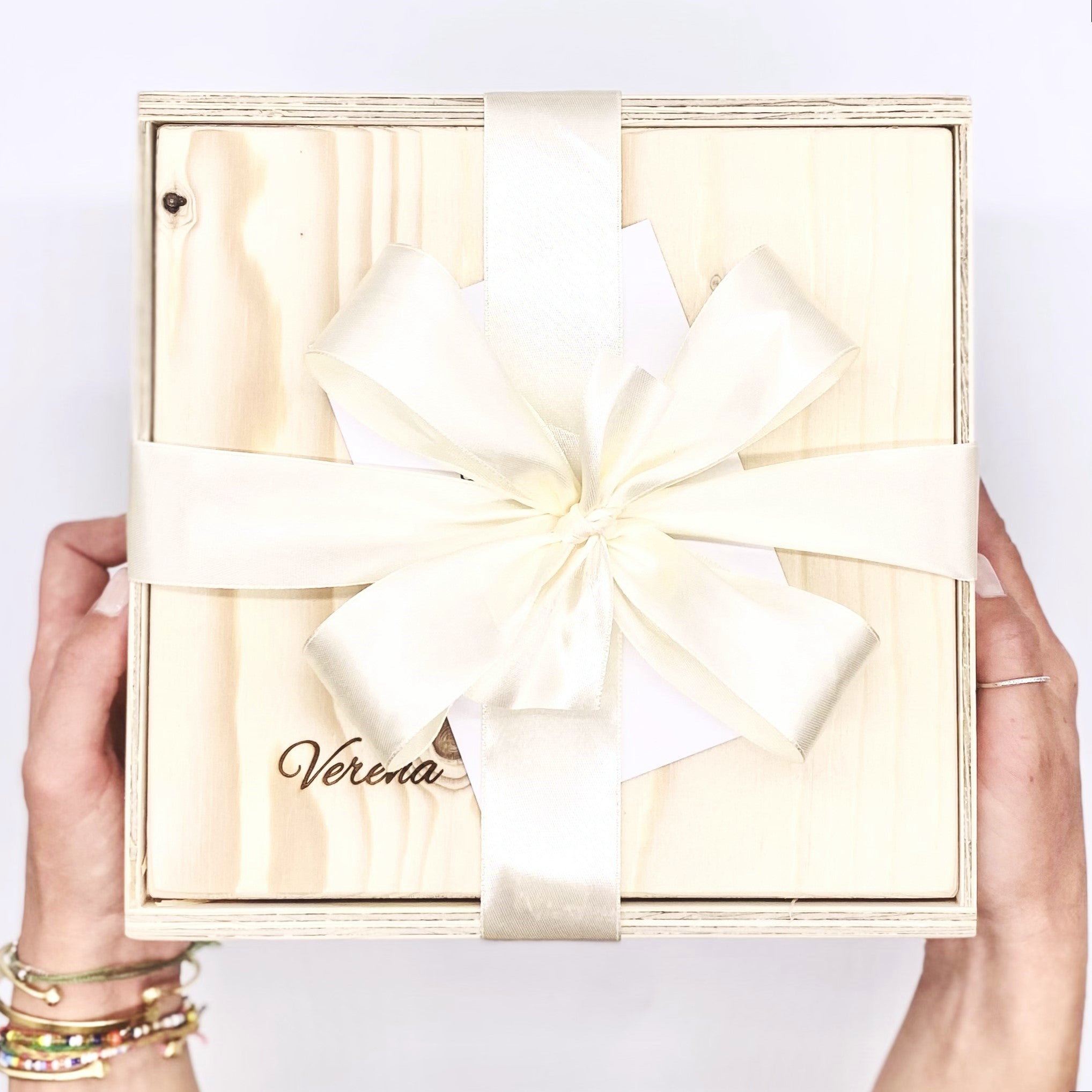 All unsere Geschenkboxen werden mit deiner gewünschten Schleifenfarbe gebunden. Wir haben eine zahlreiche Auswahl an verschiedenen Farben und Größen.  Hier kannst du unsere Farben sehen und entscheiden welche Farbe zu deinem Geschenk passt.